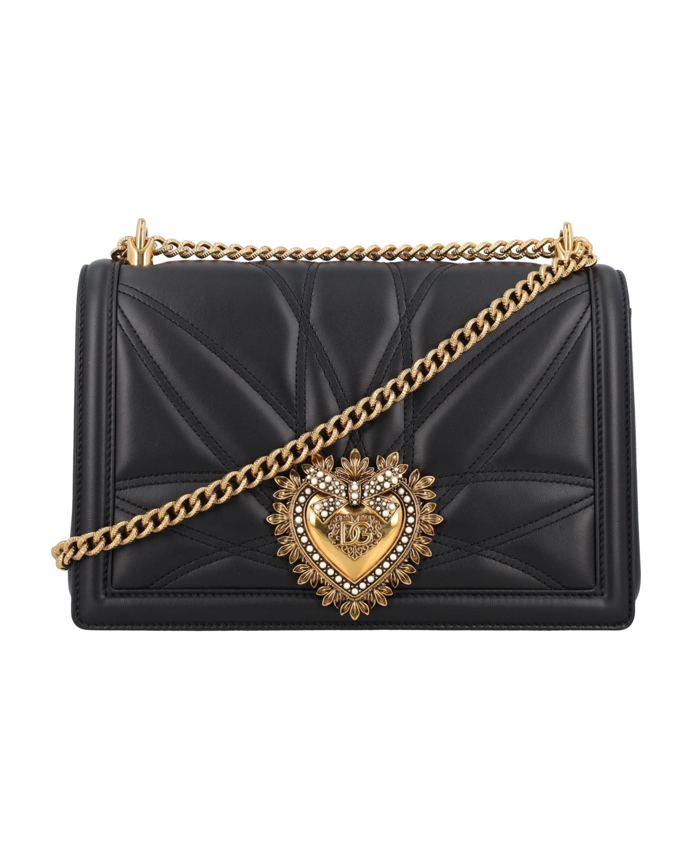 Devotion Crossbody Bag By Dolce&gabbana. Featuring: Chain And Leather Shoulder Strap Quilted Leather Flap Opening Clasp Golden Closure Gold "heart" Logo Plate In Front Main Compartment Inner Zipped Flat Pocket Inner Card Slot Patterned Lining Height: 15,5cm Width: 25,5cm Depth: 6,5cm