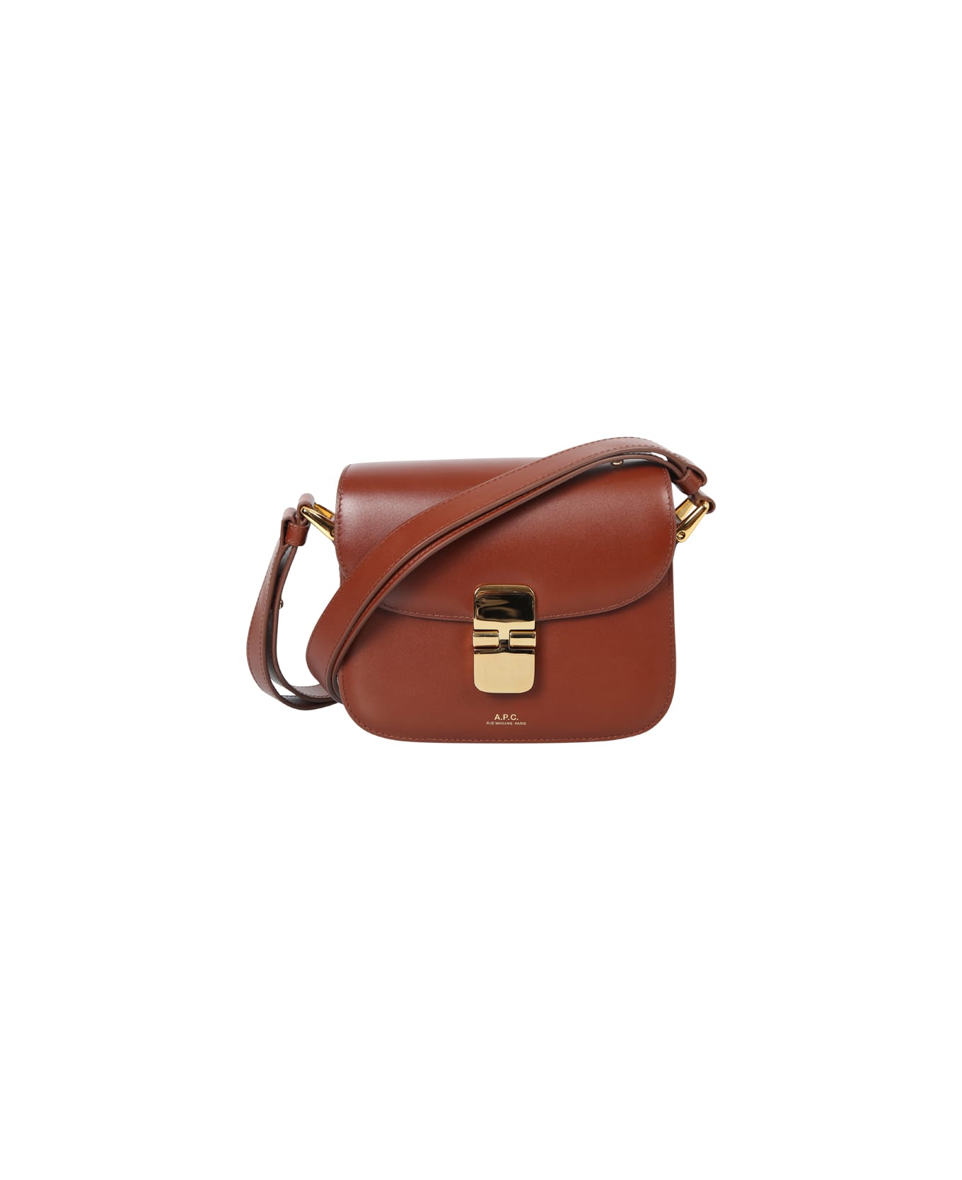 Main compartment. Clasp fastening. Embossed logo on the front. Adjustable shoulder strap. Color: brown
