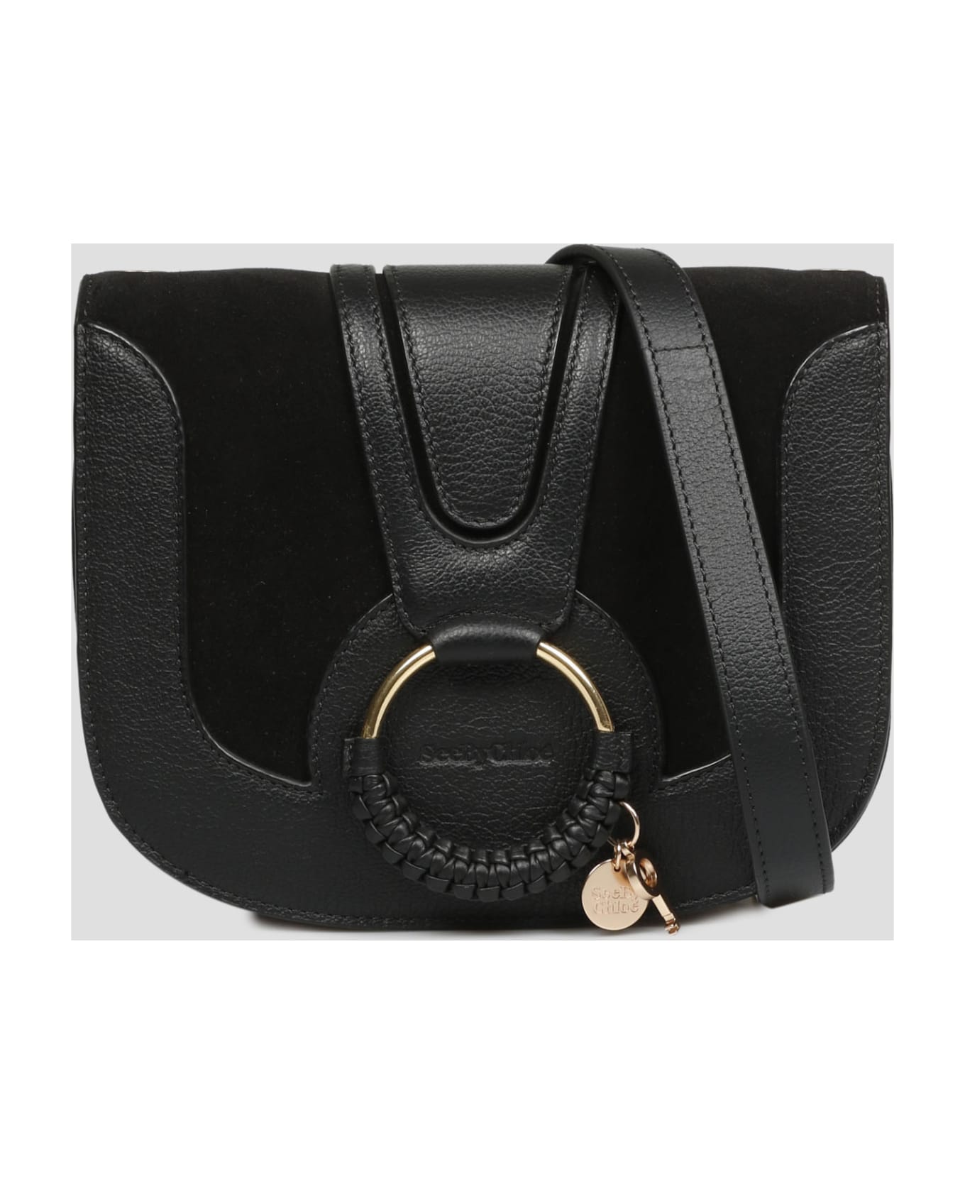 Hana shoulder bag by See by Chloé, in suede and grained leather embellished with the iconic O-ring and charms. - Iconic light gold metal O-ring with woven leather detail