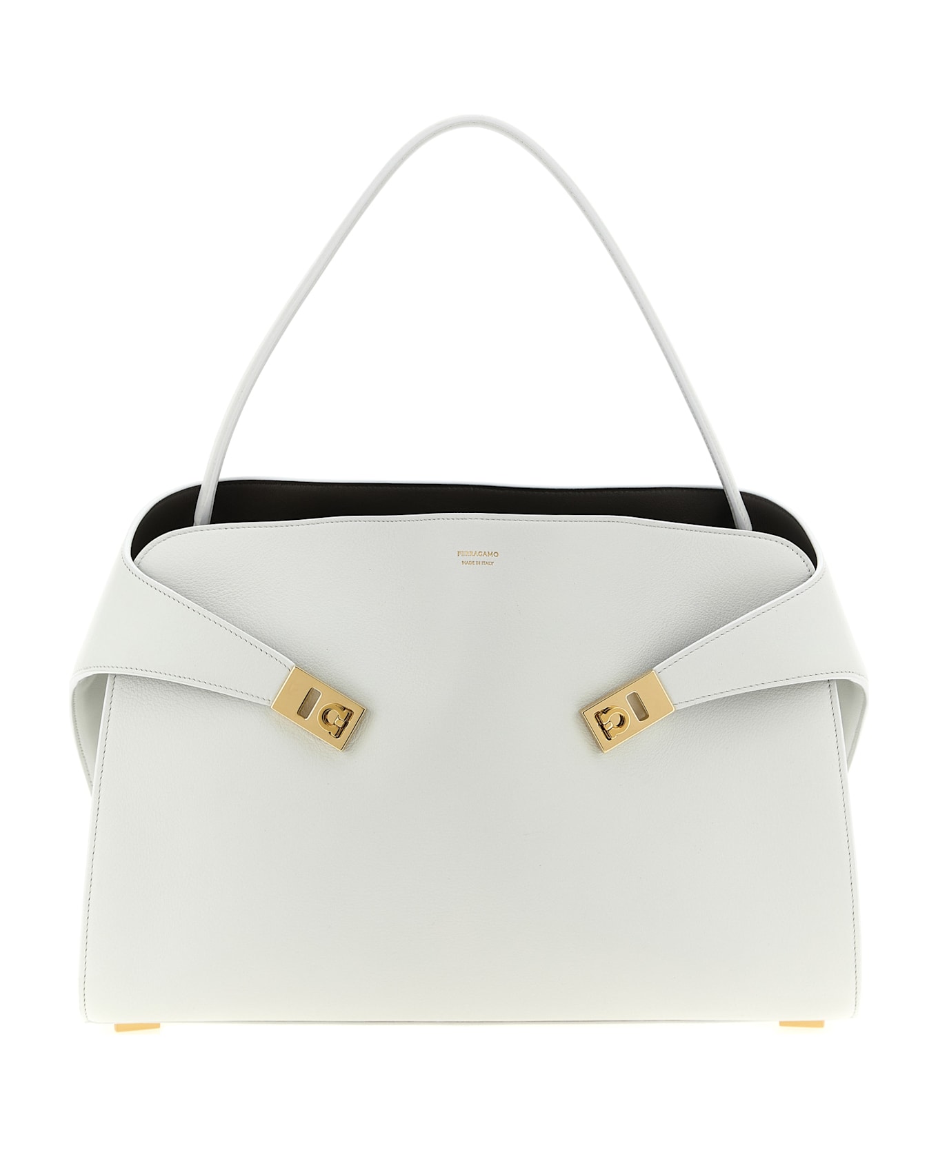 'Hug Soft M' leather shoulder bag with front embossed logo, side gussets with Gancini buckle decoration, inner flap closure with magnets and T-bar, fixed handle, metal details. Composition: 100% calfskin leather (Bos Taurus)