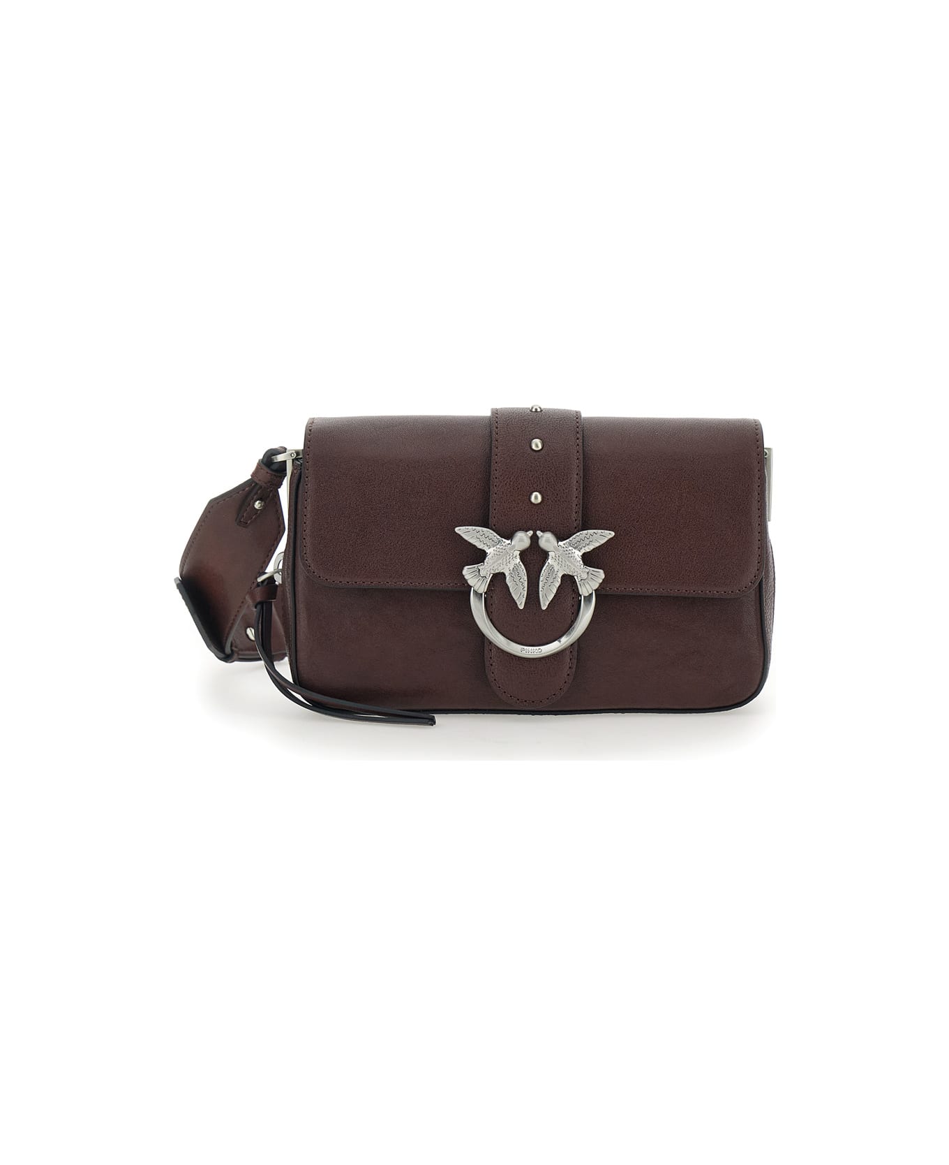 'love One Mini' Brown Crossbody Bag With Love Birds Buckle And Adjustable Shoulder Strap In Leather Woman