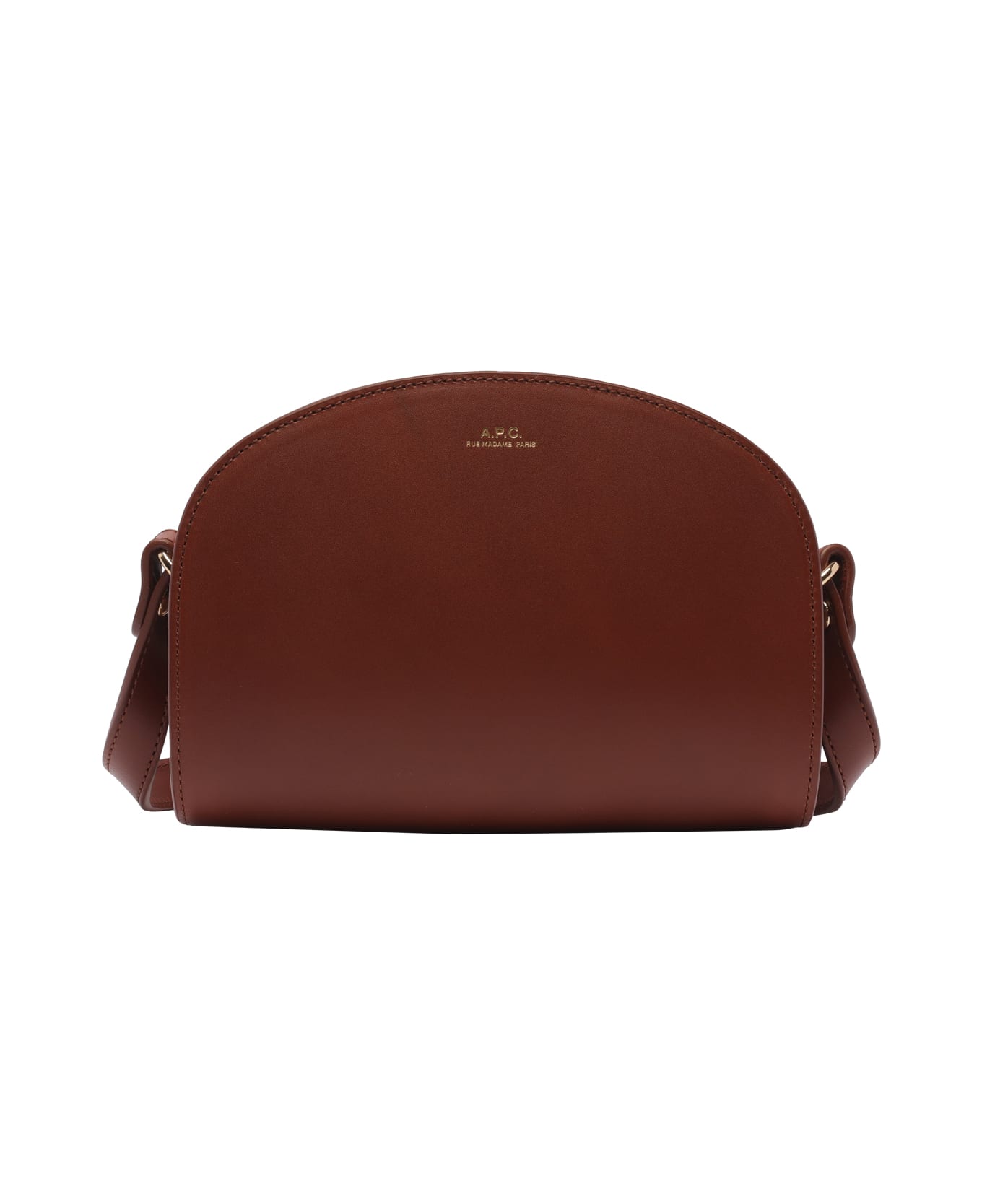 A. P. C. noisette mini Demi Lune crossbody bag, zip closure, inner open pocket, adaptable strap, frontal mini logo