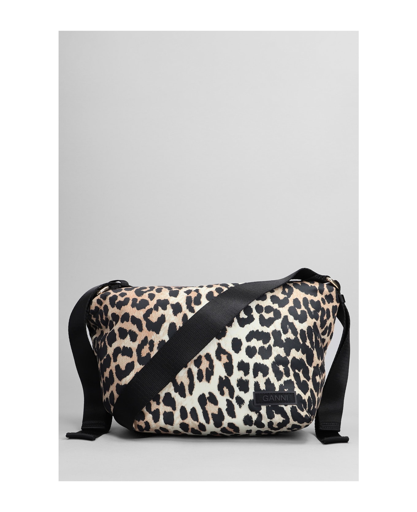 Shoulder bag in Animalier polyester, adjustable shoulder strap, zip clousure, patch logo , animalier print, Height 205 mm, Width 320 mm