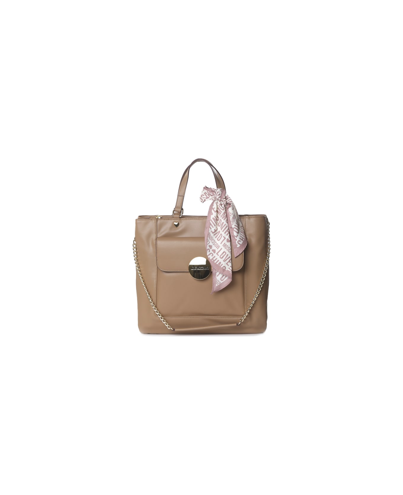 Taupe Tote Bag from Love Moschino -Tote bag -Top handles -Removable shoulder strap -Gold logo -Outside pocket on the front -Zip pocket -Measurements: 34 x 32 x 7 cm -Colour: Taupe -100% PU