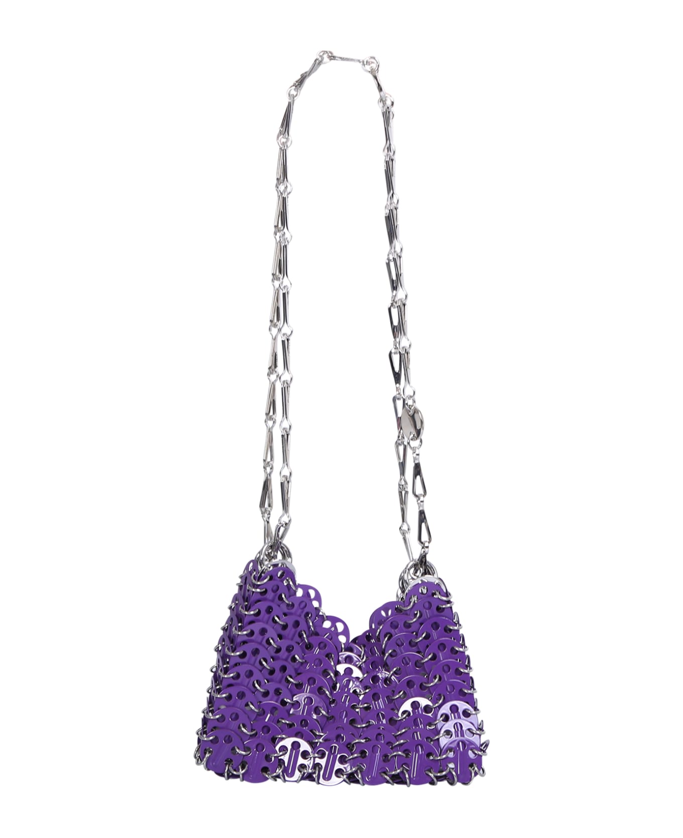 Metal mesh design. Main compartment. Shoulder strap. Color: purple