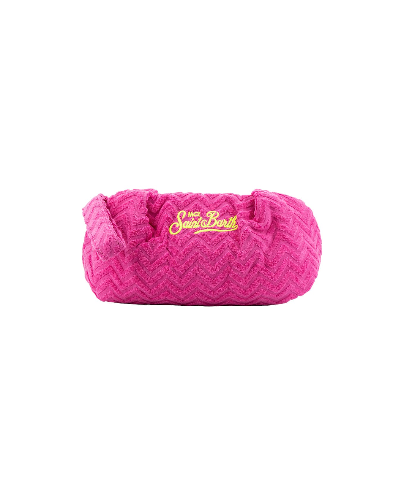 Sponge handbag featuring embossed geometric pattern, embroidered Saint Barth logo, magnet closure. Dimensions: 28 x 15 x 12 cm. Composition: 100% PL
