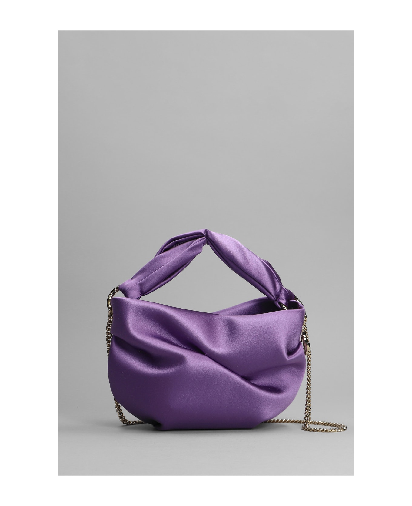 Bonny sat Hand bag in Viola satin, handle, chain shoulder strap, silver hardware, 100% satin, Made in Italy, Height 130 mm, Width 200 mm