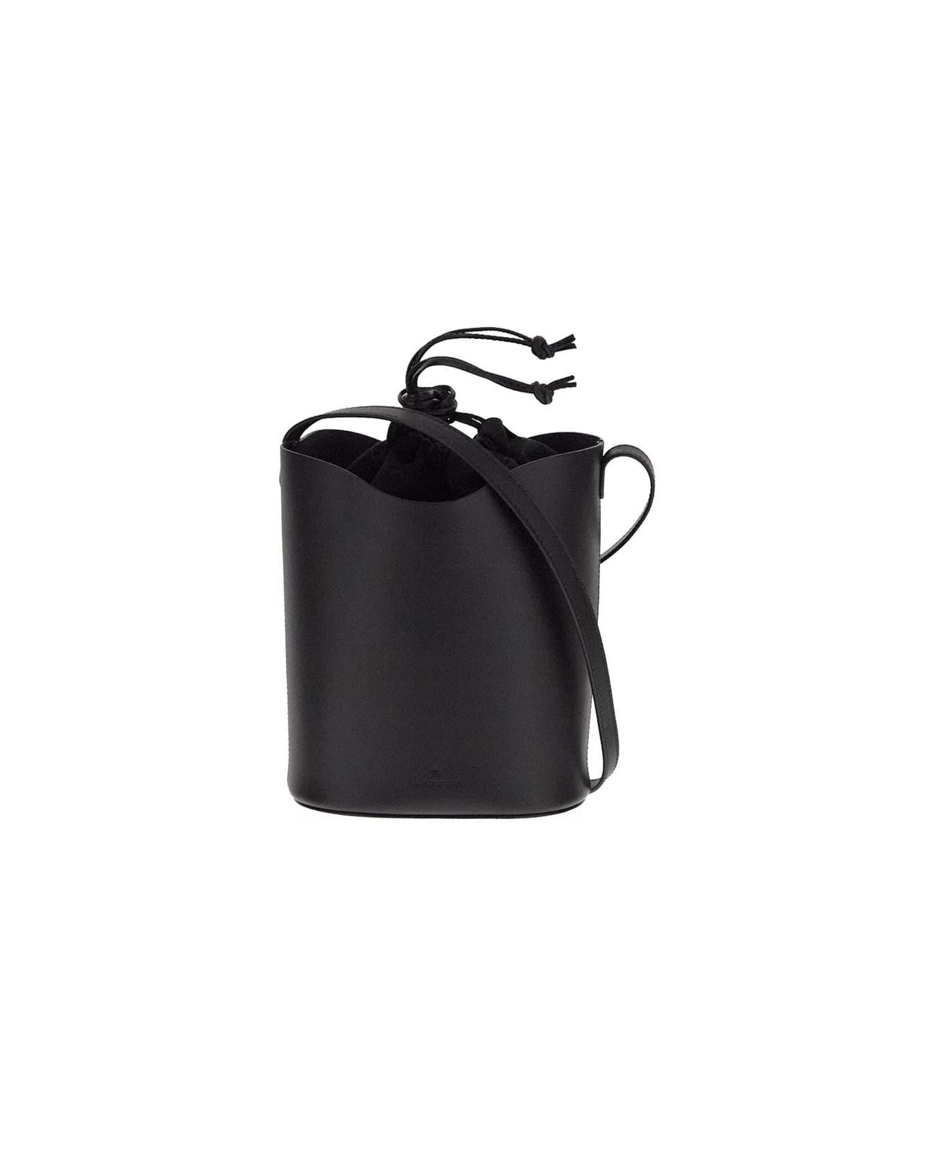 Il Bisonte bucket bag in black leather with debossed logo. The item is featured by shoulder strap, leather drawstring and iconic wave contour.