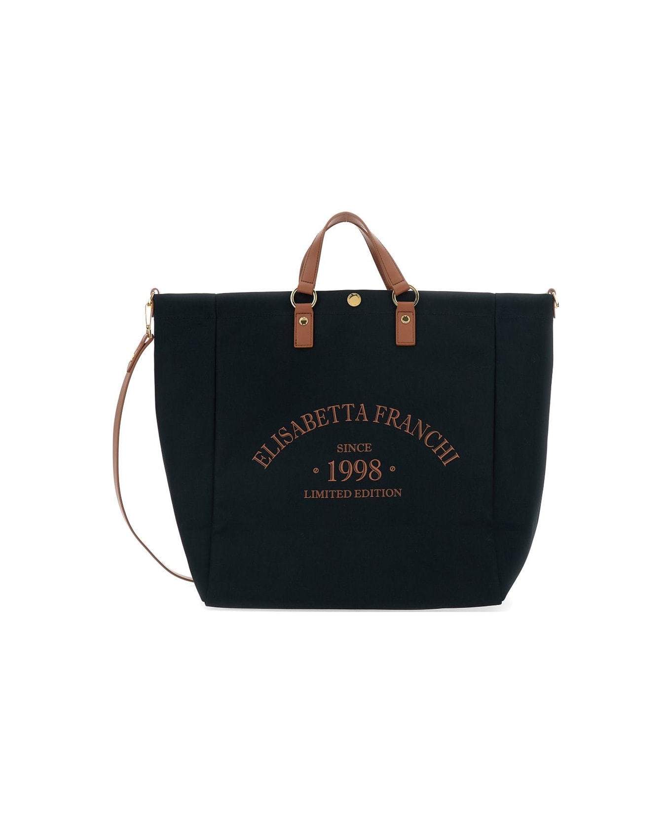 black cotton top handle appliqué detachable strap gold-tone hardware