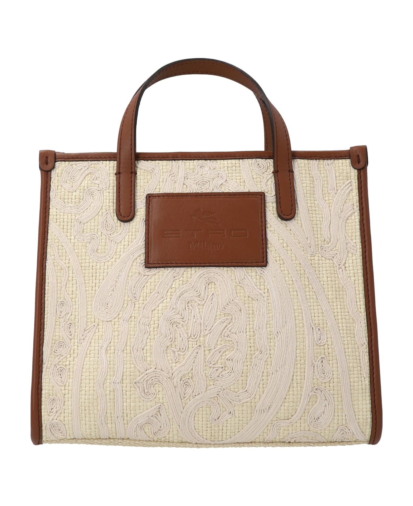'Globetrotter Ric Cornely' medium shopping bag with leather details, tone-on-tone paisley patterned embroidery, embellished with ETRO and Pegaso logo label, a leather handle, an adjustable and removable shoulder strap and an inner zip pocket.