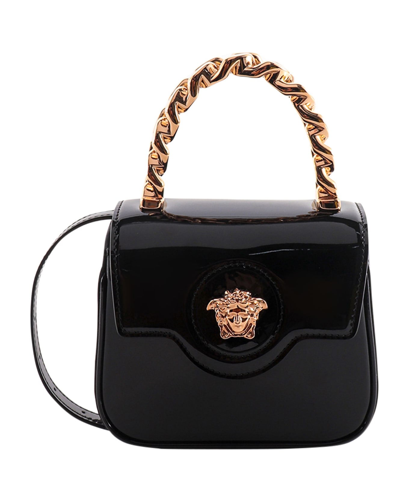 - Closure With Flap And Magnetic Medusa Button - Chain Handle - Removable Shoulder Strap - Made In Italy - Leather