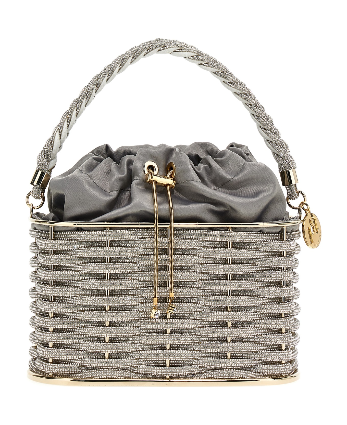 Holli Armadillo' handbag with metal structure and woven fabric with ll-over sequins, inner satin and a drawstring, a top handle with sequins.
