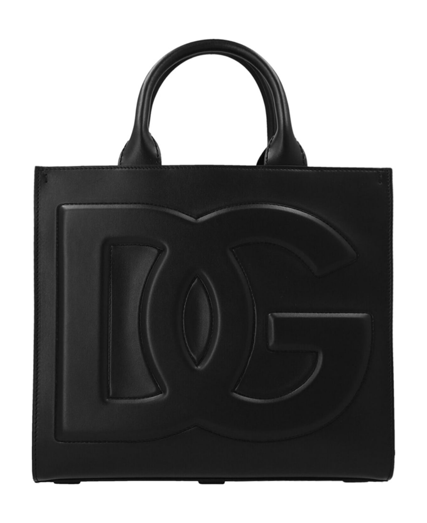 Leather handbag with embossed logo on the front, double leather handle. Composition: 100% lamb leather