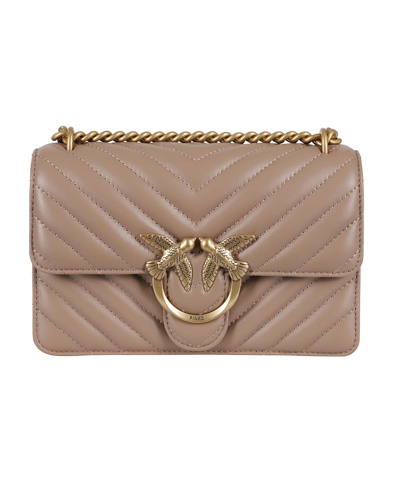 Love One Mini bag -Pinko -Biscuit color -Double interior compartments -Shoulder strap -Flap and snap button closure -Dimensions: Width 21cm x Height 14cm x Depth 5cm