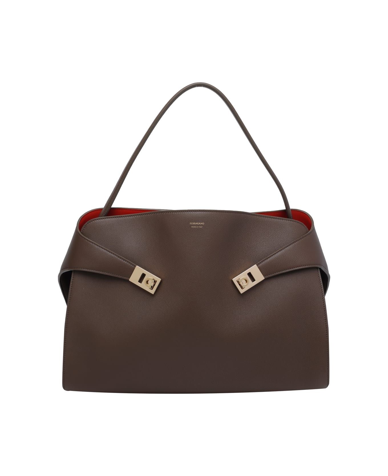 Ferragamo brown Medium Hug shoulder bag, magentic closure, 2 sections, central pocket, 1 shoulder strap, leather upper Composition: 100% Calf Leather