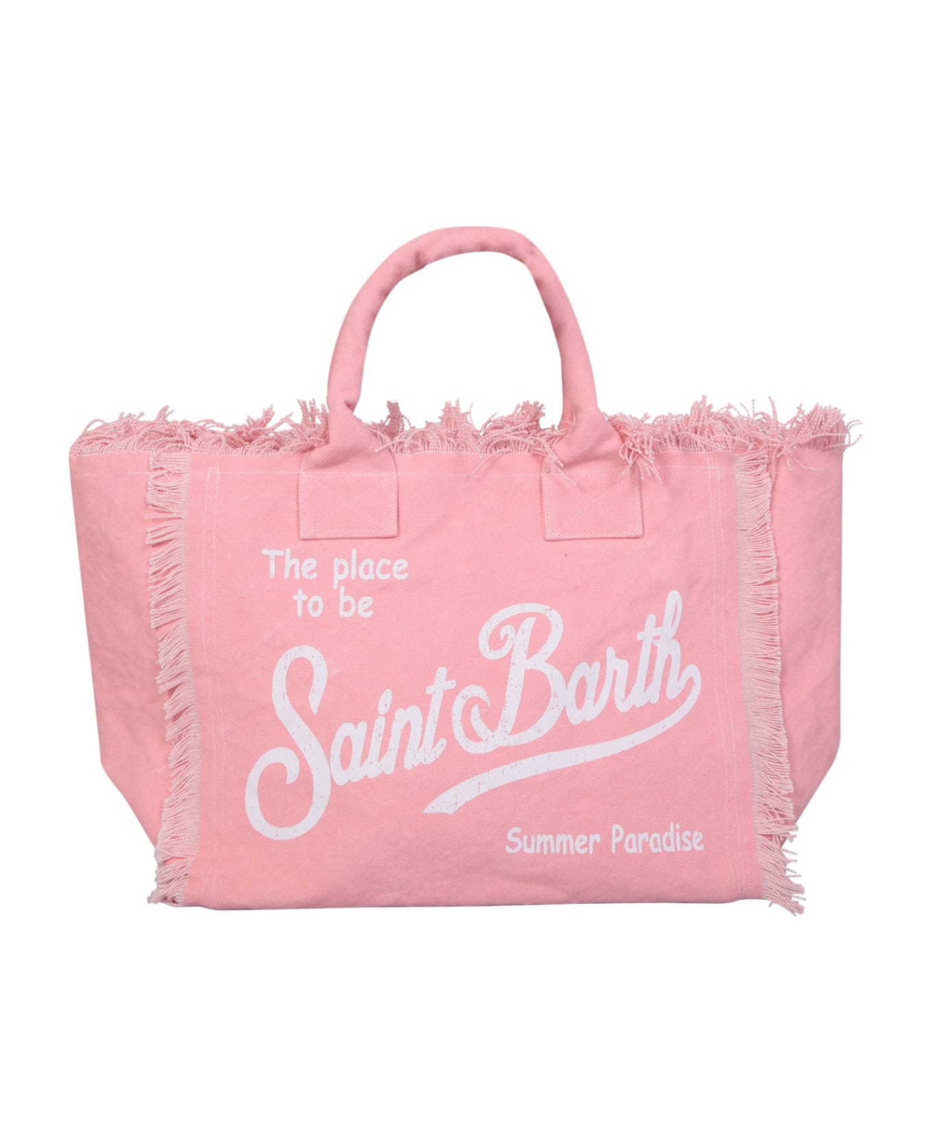 Top zip fastening. Main compartment. Internal slip pocket. Two top handle. Embroidered logo to the front. Embroidered logo to the rear. Frayed edge. Full lining. Color: pink/ white