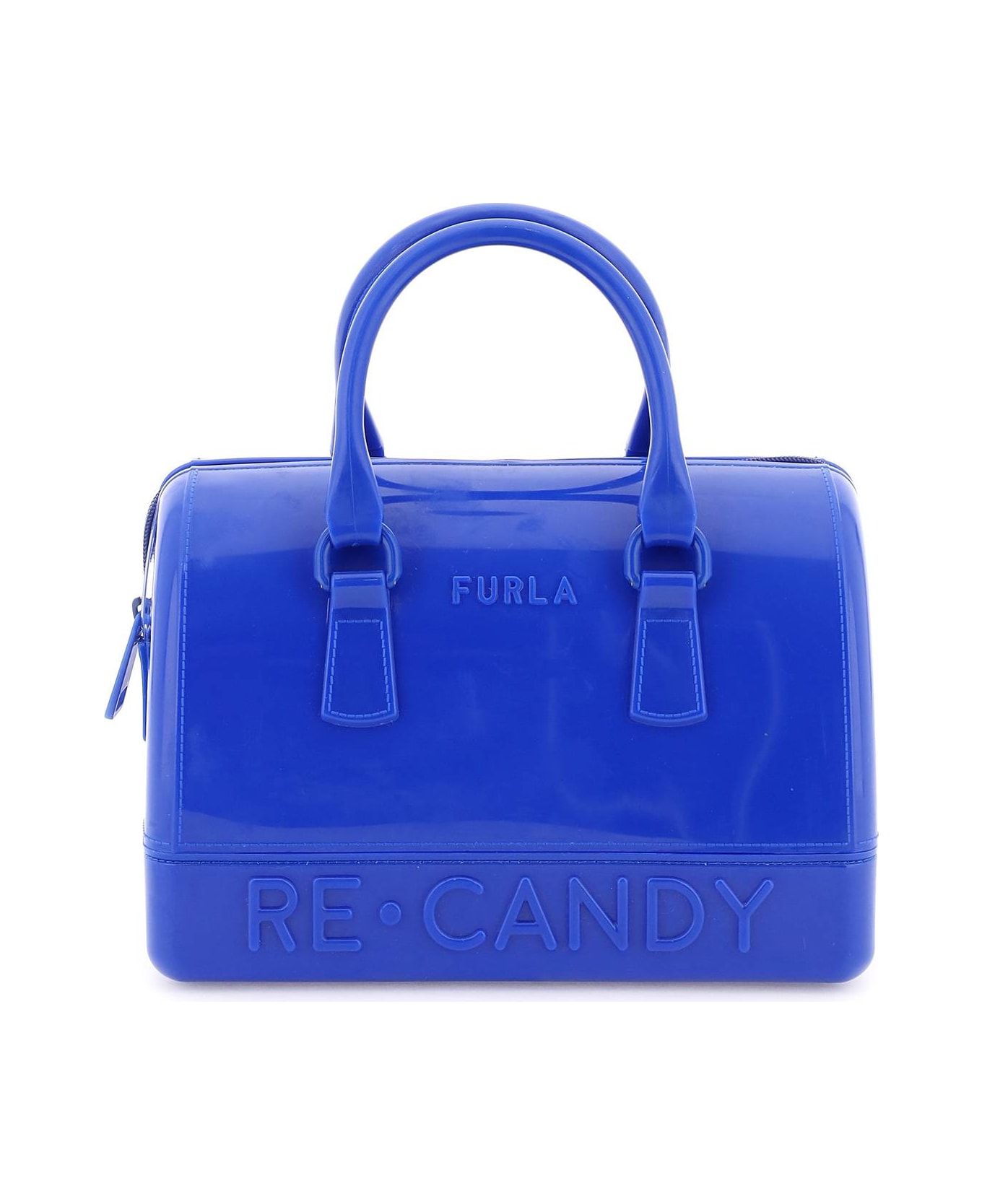 Candy Boston S bag by Furla crafted in recycled TPU with embossed "RE-CANDY" lettering on front and back, double top handle with tone-on-tone recycled ABS details and zip closure. Embossed lettering logo on front and on the zip puller. Unlined.