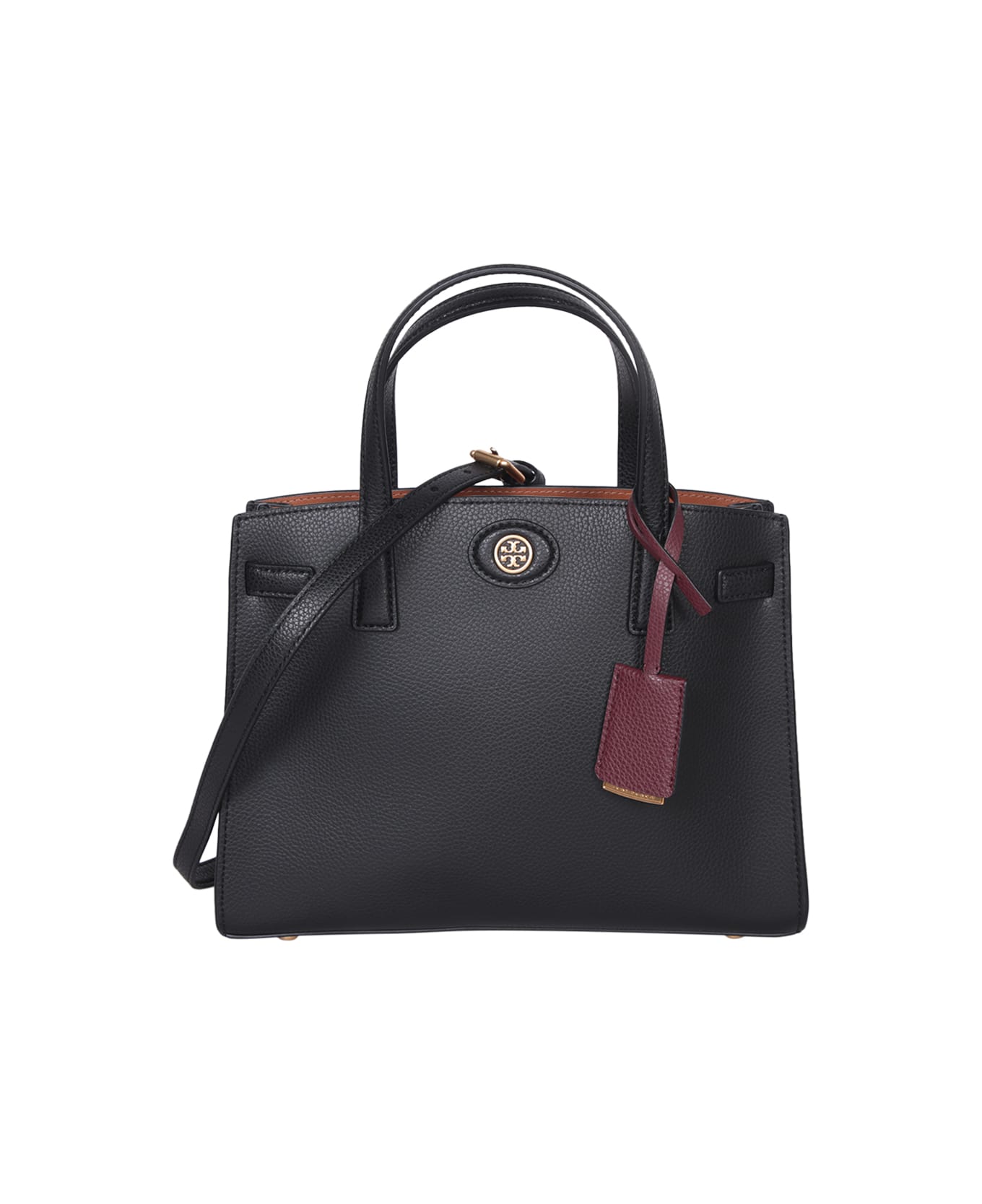 A must-have accessory for a sleek appearance, this Tory Burch bag blends functionality and style with a black leather finish, sophisticated details, and a versatile shoulder strap.