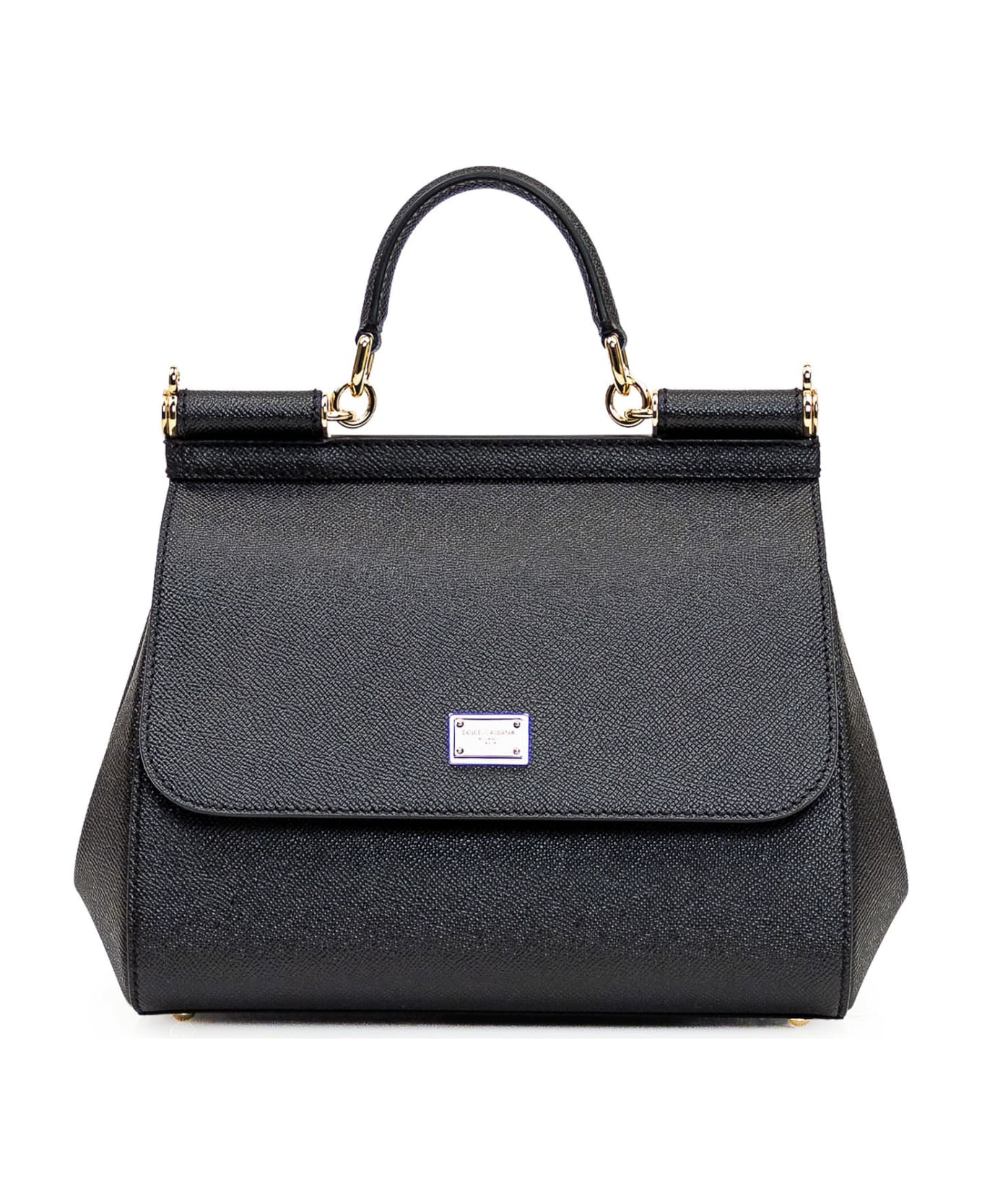 Black mini bag. One handle. Adjustable and removable shoulder strap. Inside zip pocket. Flap closure and magnetic buttons.. Logo label on the front. Composition: Outside:, 100% Calfskin