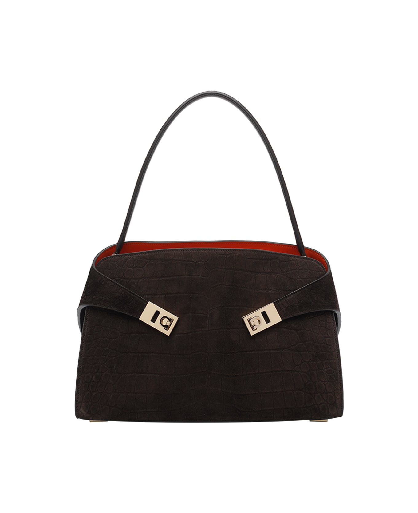 Ferragamo brown Small Hug shoulder bag, magnetic closure, 2 sections, central zipped pocket, 1 shoulder strap, adaptable and removable strap Composition: 100% Calf Leather