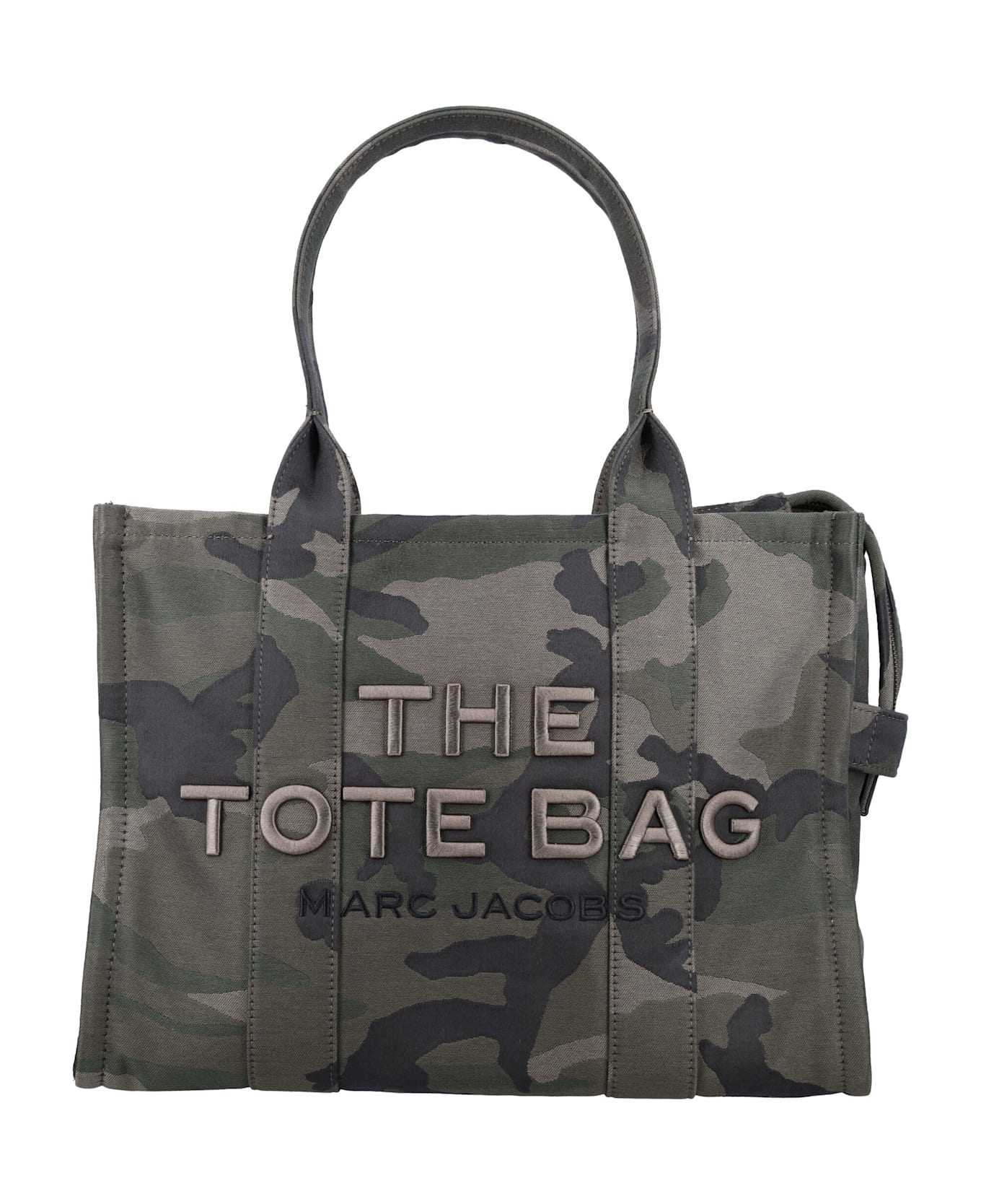 The Camo Jacquard Large Tote Bag By Marc Jacobs. Featuring: Woven Jacquard Top Zip Closure Top Handles Embroidered Logo At Front Logo Patch At Back 1 Interior Zip Pocket, 2 Slip Pockets Twill Lining Height: 34 Cm Width: 42 Cm Depth: 16 Cm