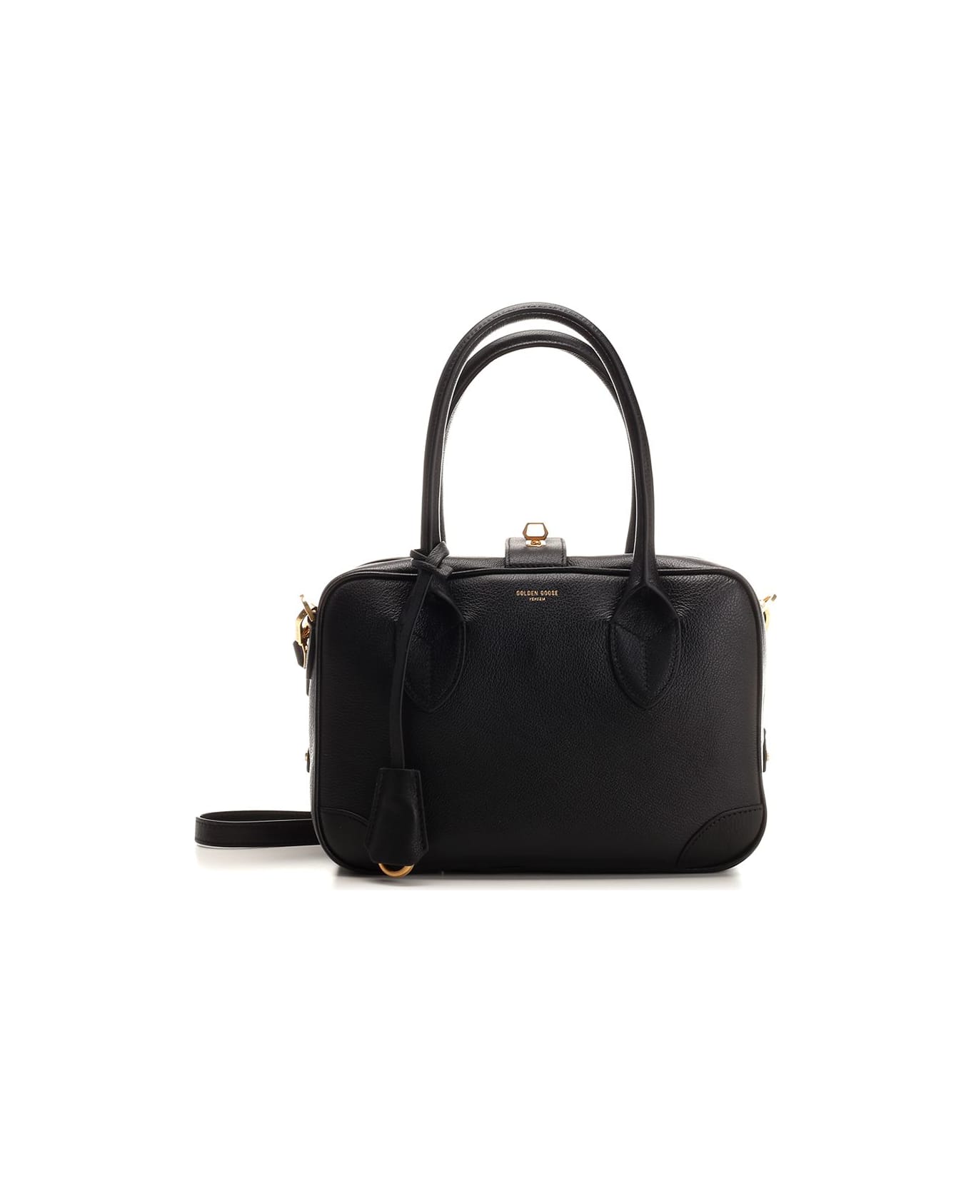'Vita' black leather bowling bag from Golden Goose, with rounded top handles, detachable shoulder strap, zip closure, protective feet. Composition: GOAT LEATHER 100% LINING COTTON 100%