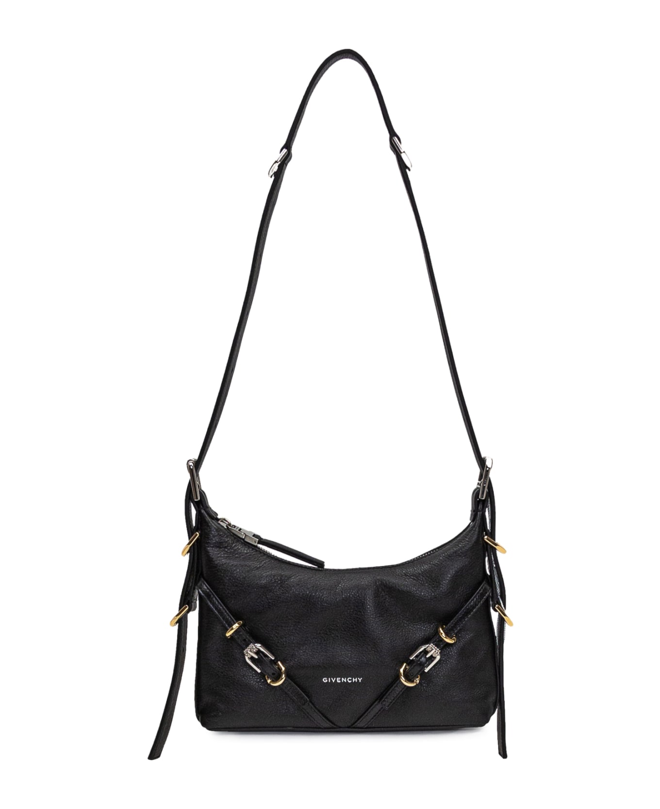 Mini black bag. Adjustable shoulder strap. Zip closure. Metal buckles with logo. Metal details. Logo on the front. Composition: Outside:, 100% Calfskin