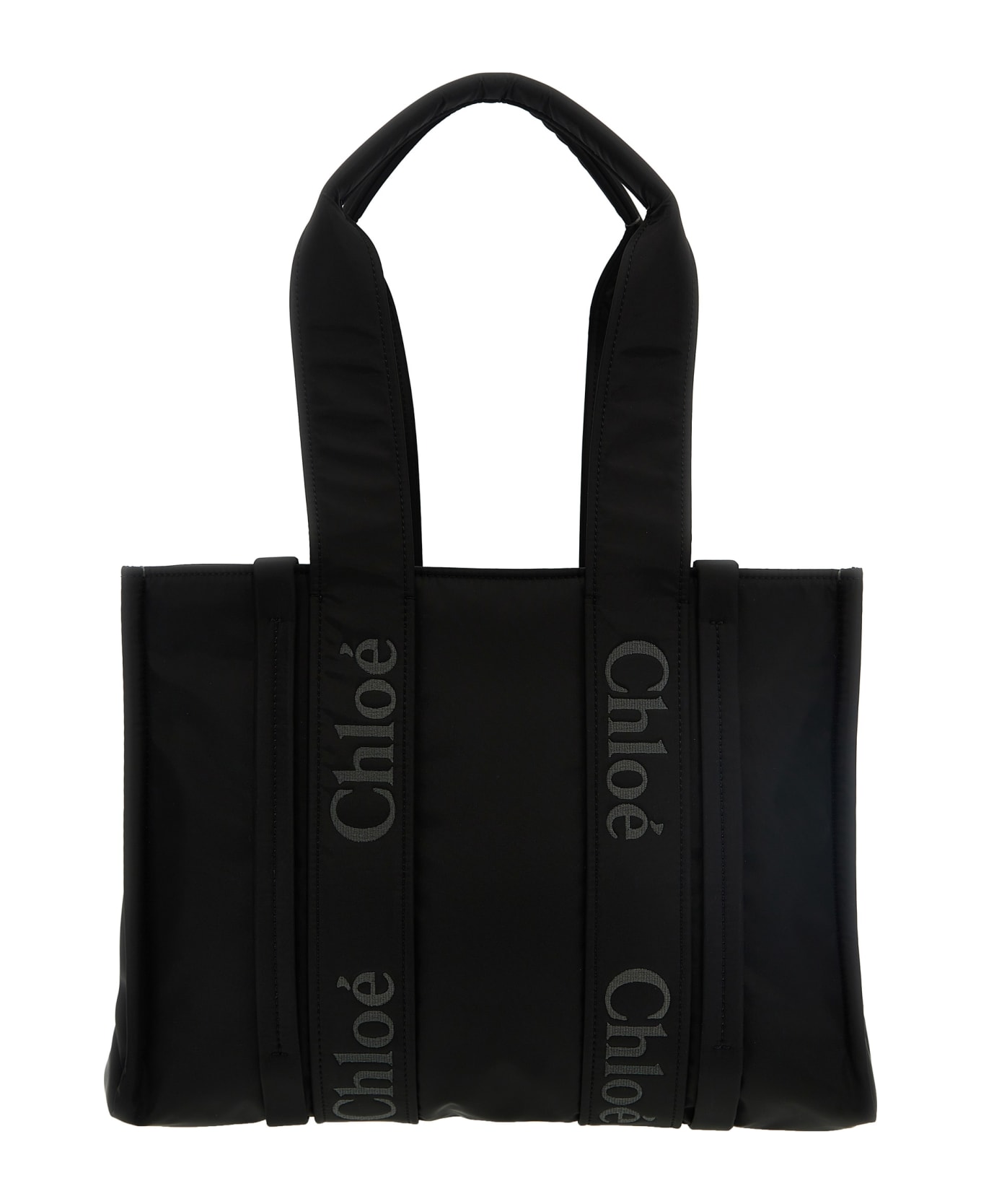 Medium 'Woody' shopping bag in recycled nylon with embroidered logo. SUSTAINABLE