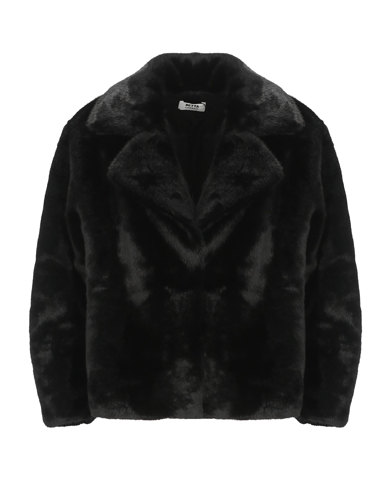 - Betta Corradi woman's black synth fur coat - Classic lapel collar - Long sleeves - Front hooks fastening - Two front slit pockets