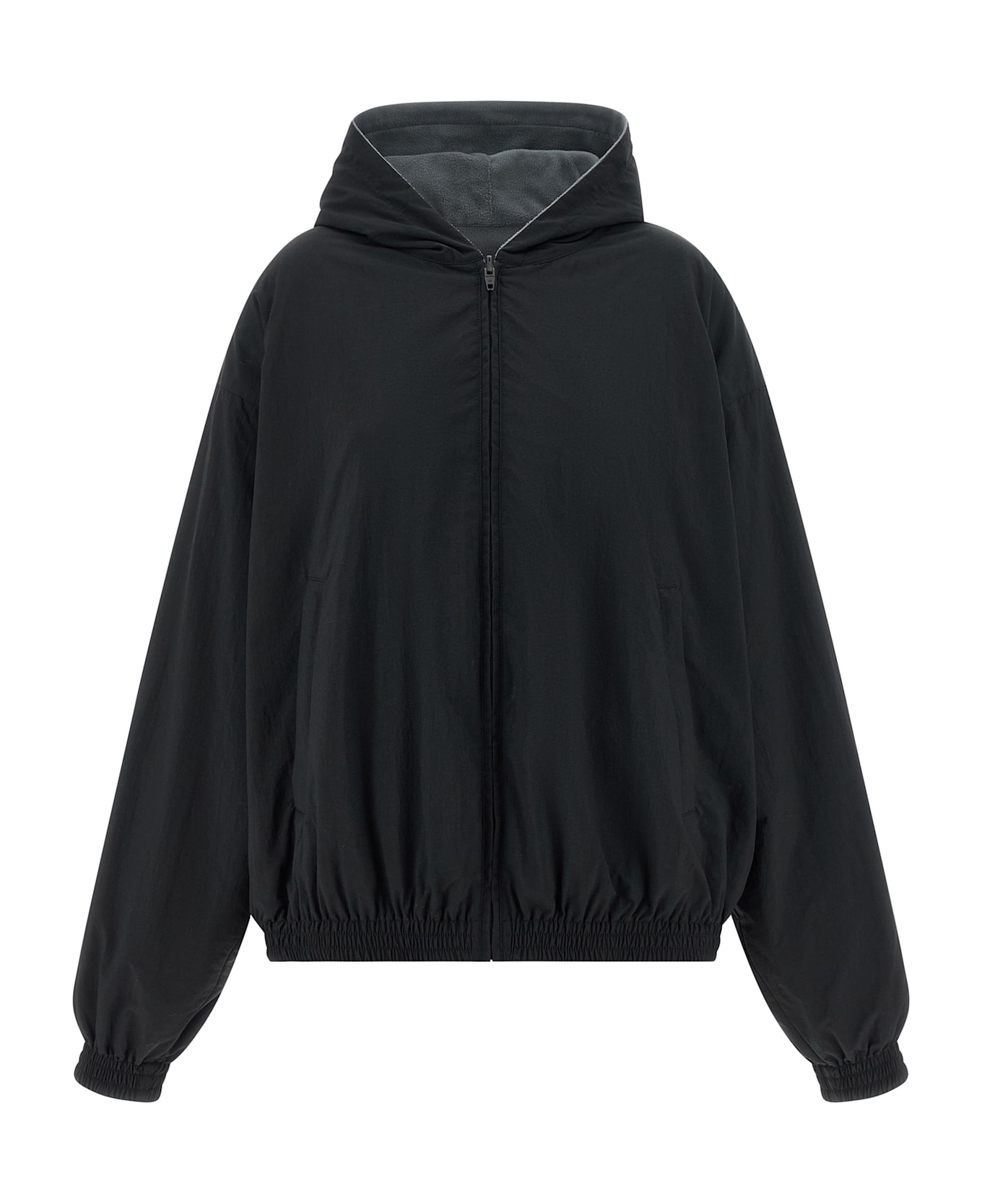 Reversible jacket in nylon tracksuit canvas and dry fleece, 'Cursive' embroidery on the front and back, hood, front zip closure, pockets, long sleeves with elastic cuffs and dropped shoulder, elastic hem. Composition: 100% polyamide