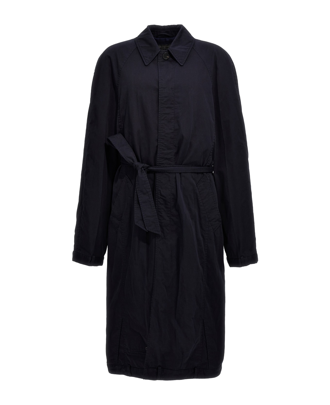 'Deconstructed' cotton twill coat with raglan sleeves, button closure, belt at the waist and back zip split. Composition: 100% cotton