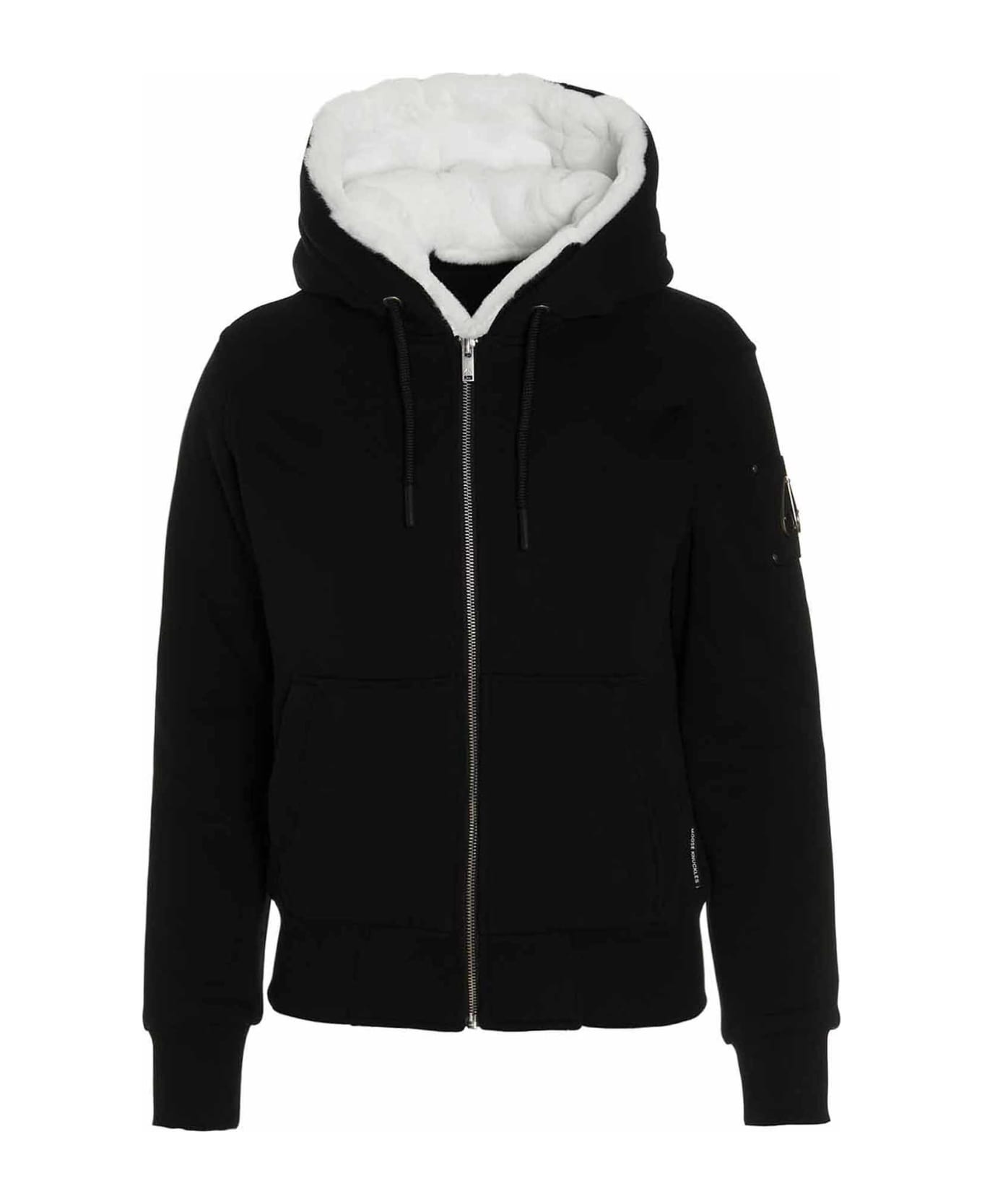 Classic Bunny' sweatshirt with removable rabbit fur lining, zip closure, pockets, metal logo patch and long cuffed sleeves.