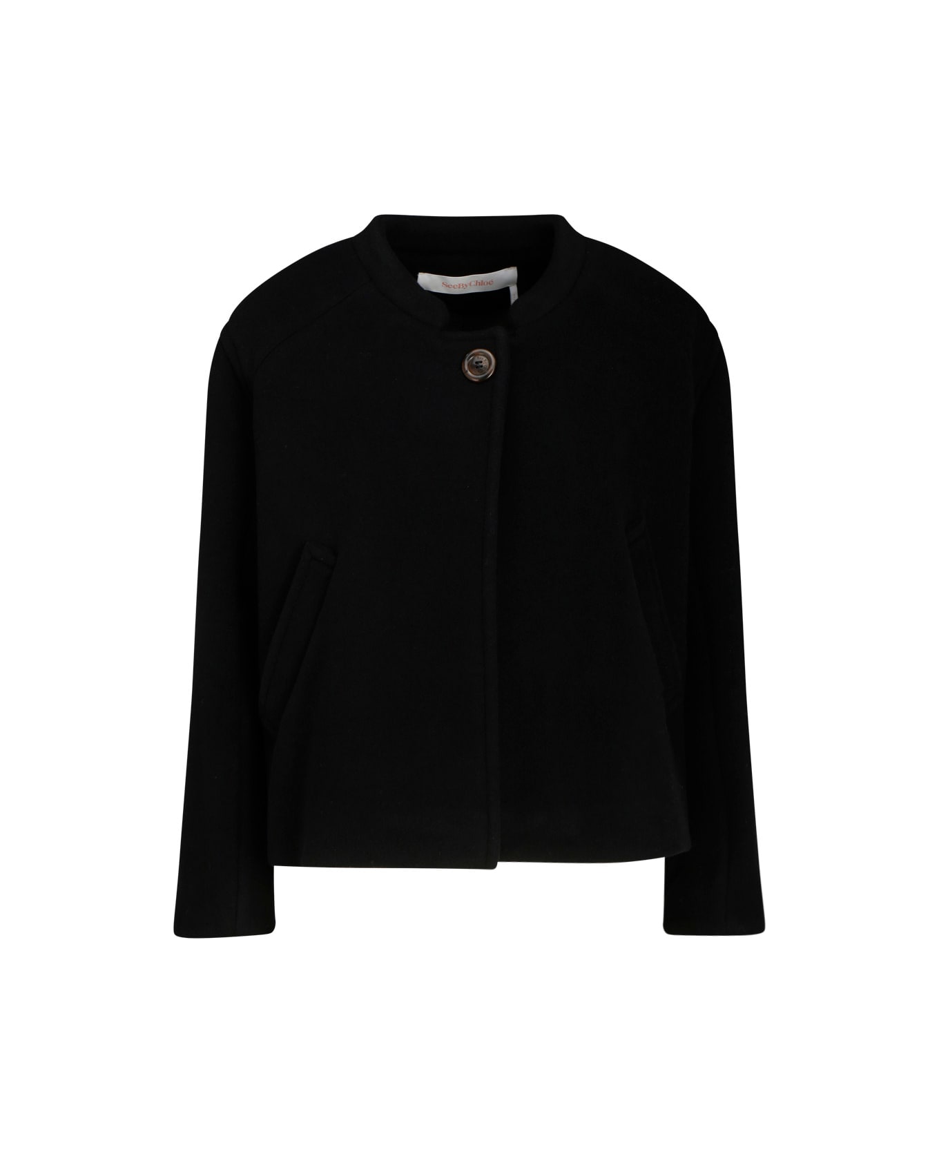 Wool jacket by see by chloé, contrasting single button front fastening, two side welt pockets, short style. Composition: 78% % Wool, 22% % Polyamide