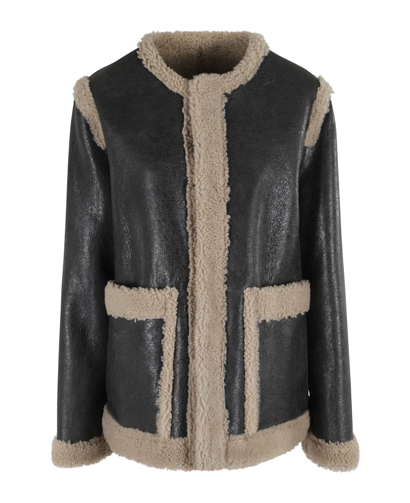 Sheepskin -MM6 Maison Margiela -Black color -Long sleeve -Front pockets -Korean collar -Central hook-and-eye closure -Reversible