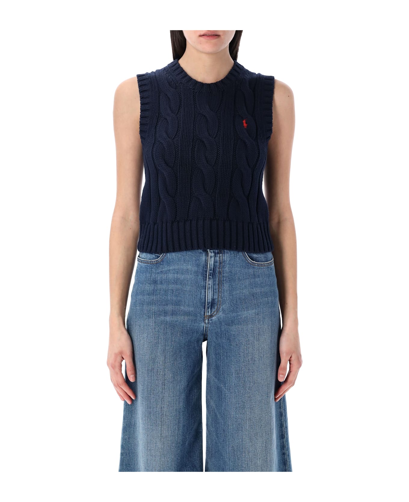 This Cable Knit Vest By Polo Ralph Lauren Reinterprets A Timeless Classic With A Modern, Feminine Proportion. Crafted From Soft Cotton Knit, It Features A Cropped Silhouette With A Clean Crew Neckline And Sleeveless Cut. The Signature Embroidered Pony At The Chest Completes The Design With An Iconic, Heritage Touch. Cotton Cable Knit Cropped Silhouette Crewneck Sleeveless Design Signature Embroidered Pony At The Chest Giulia Is 1,70 M And Wears Size S