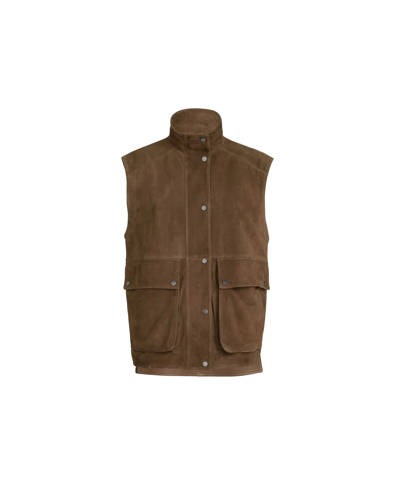 brown monili detail snap fastening high neck front pockets
