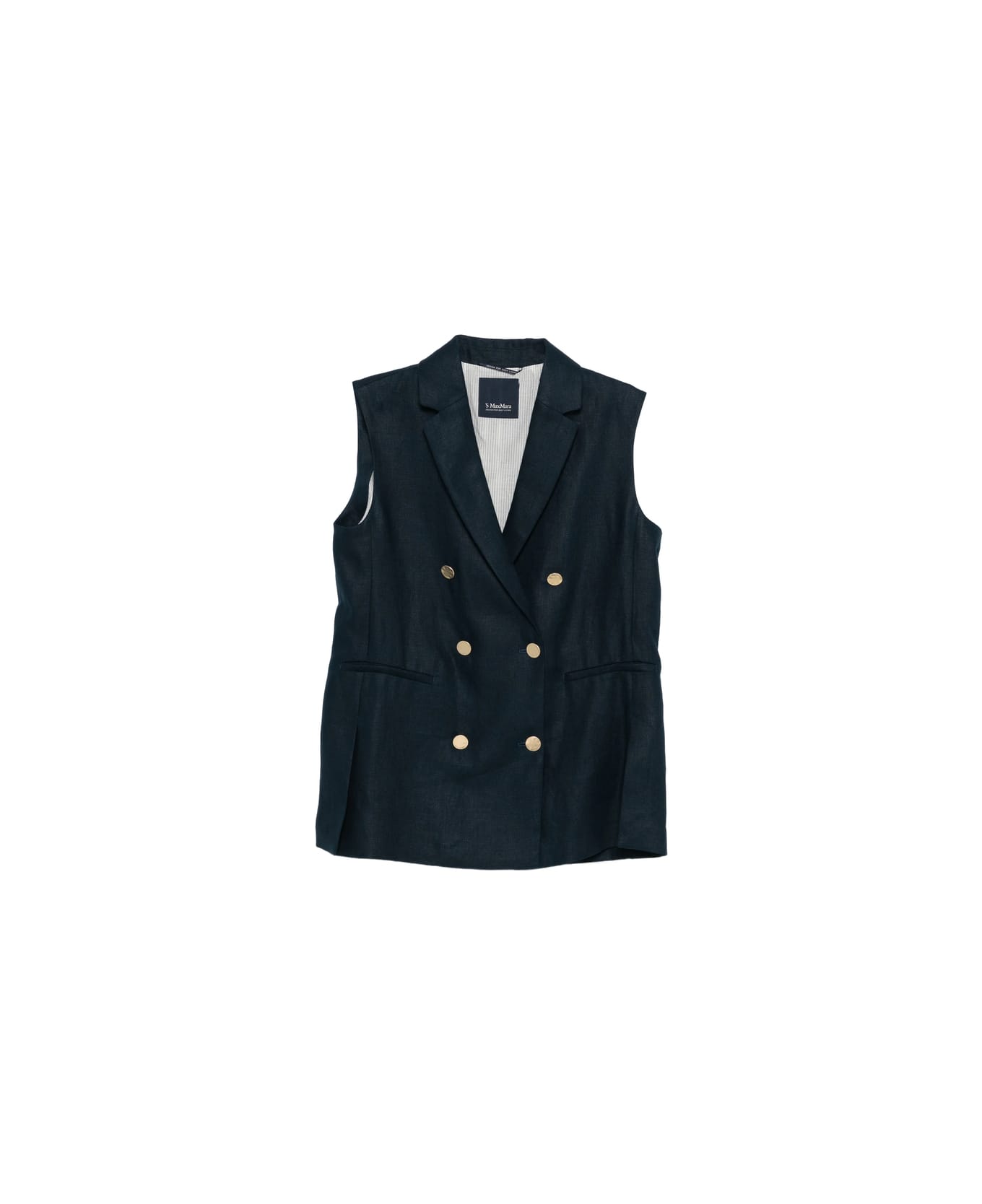 blue button detail double-breasted sleeveless notched lapels welt pocket