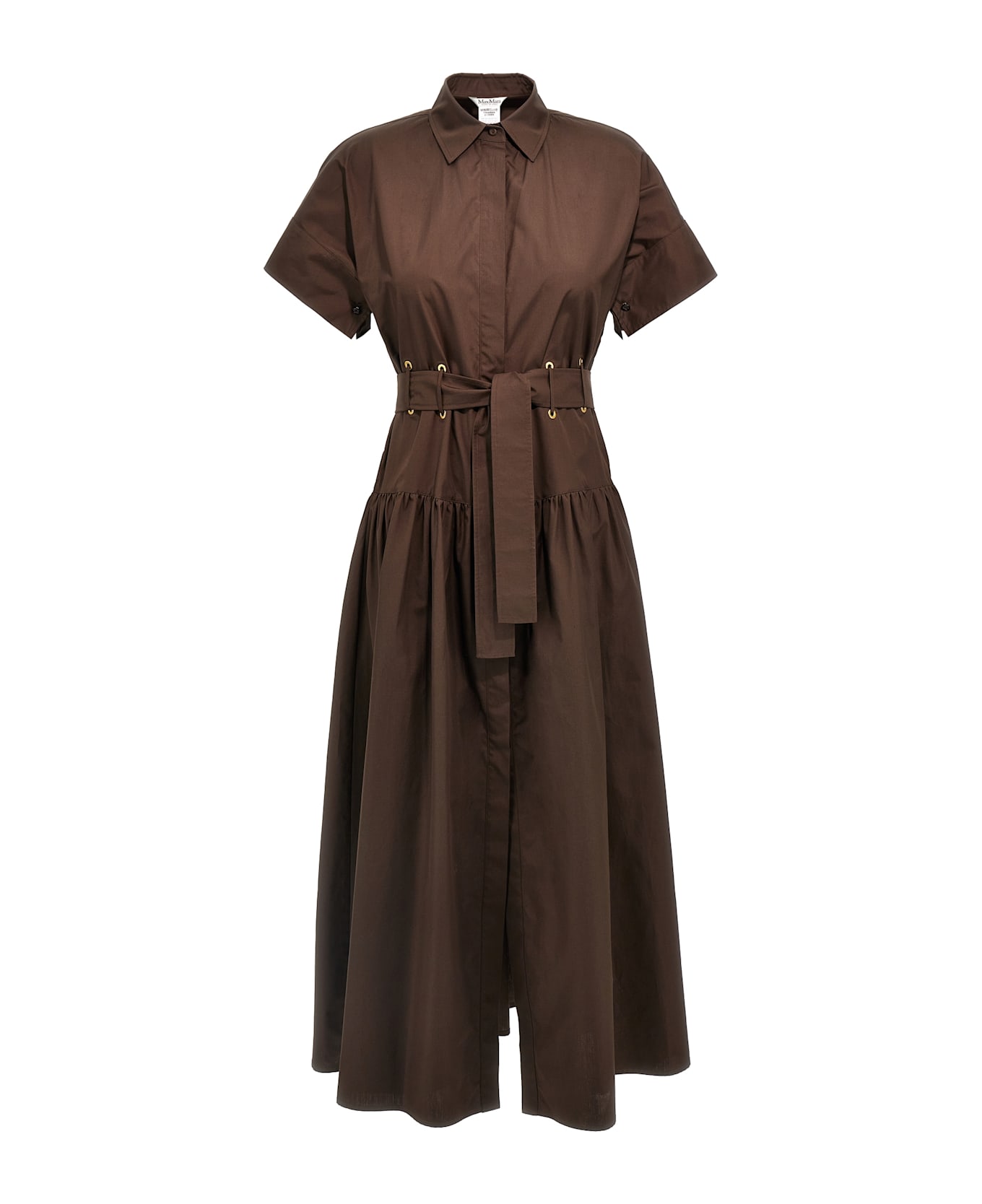 Long 'Agoraio' dress in cotton poplin, shirt model with flared skirt, short kimono sleeves with button closure, front hidden button closure, metal eyelets with belt loops and removable belt. Composition: 100% cotton