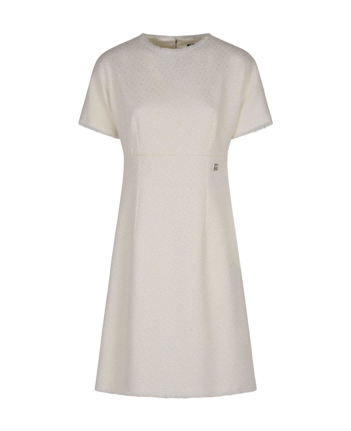 Dg Logo Plaque Raschel Tweed Midi Dress