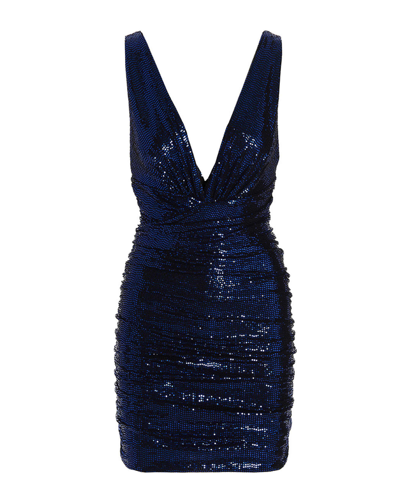 Draped minidress with stretch fabric with micro mirror, sleeveless style and a deep V-neck.