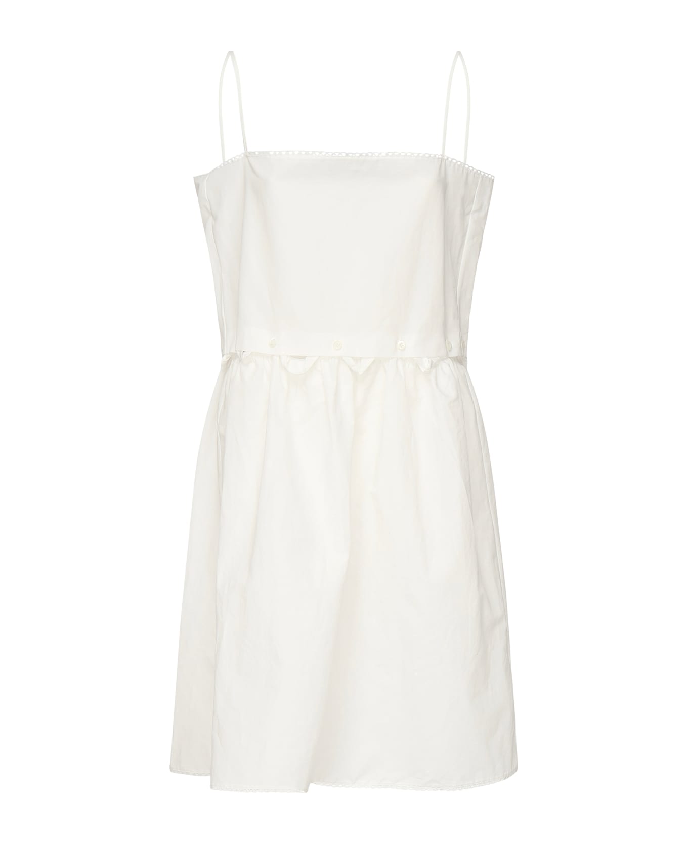 -Neckline with tubular shoulder straps -Flared fit -Waist detail with buttonholes and buttons -Knitted logo -The size shown in the photo is 40 -Color: White