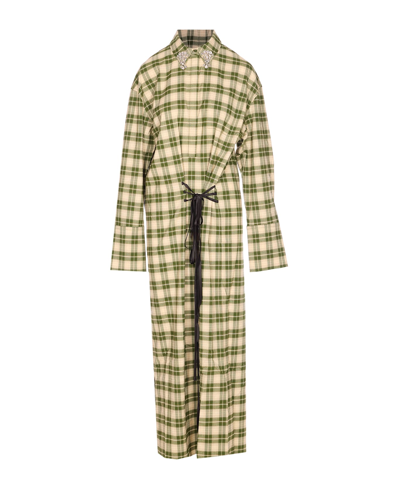 Essentiel Antwerp green Jid shirt dress, buttons closure, regular collar with application crystals details, buttons closure, long sleeves, button on cuffs, coulisse on waist, pocket on the front, check motif