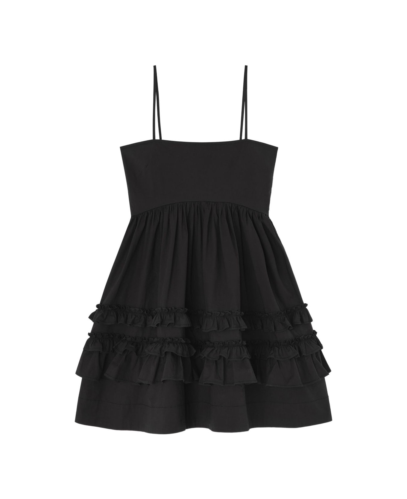 black ruffled tiers thin straps square neck smocked back panel gathered detail Composition: 97% Organic Cotton, 3% Elastane