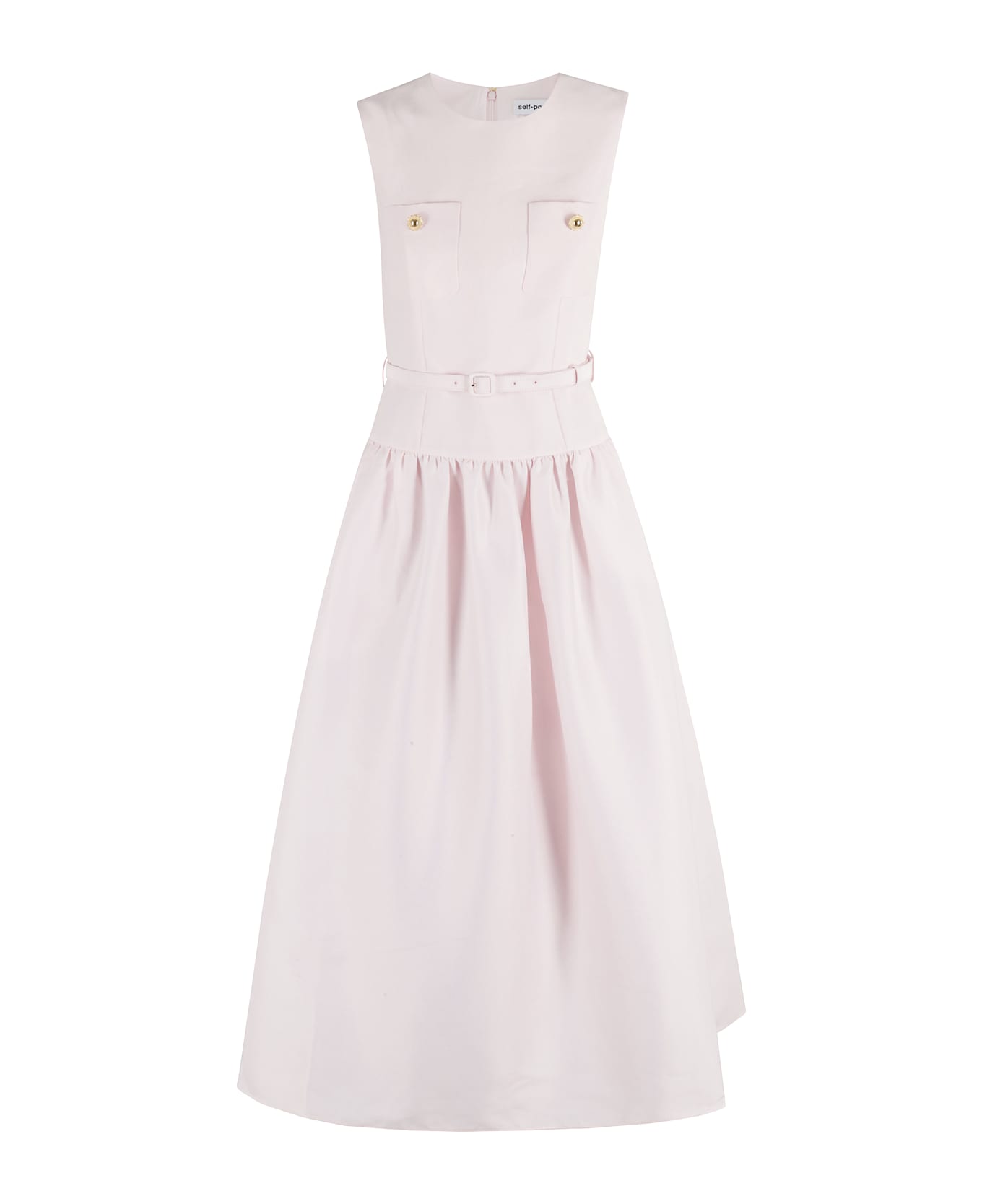 Dress - Self-Portrait - Pink color - Taffeta fabric - Round neck - Sleeveless - Chest pockets with jewel button - Wide midi skirt - Adjustable and removable waist belt - Back zipper closure - Regular fit