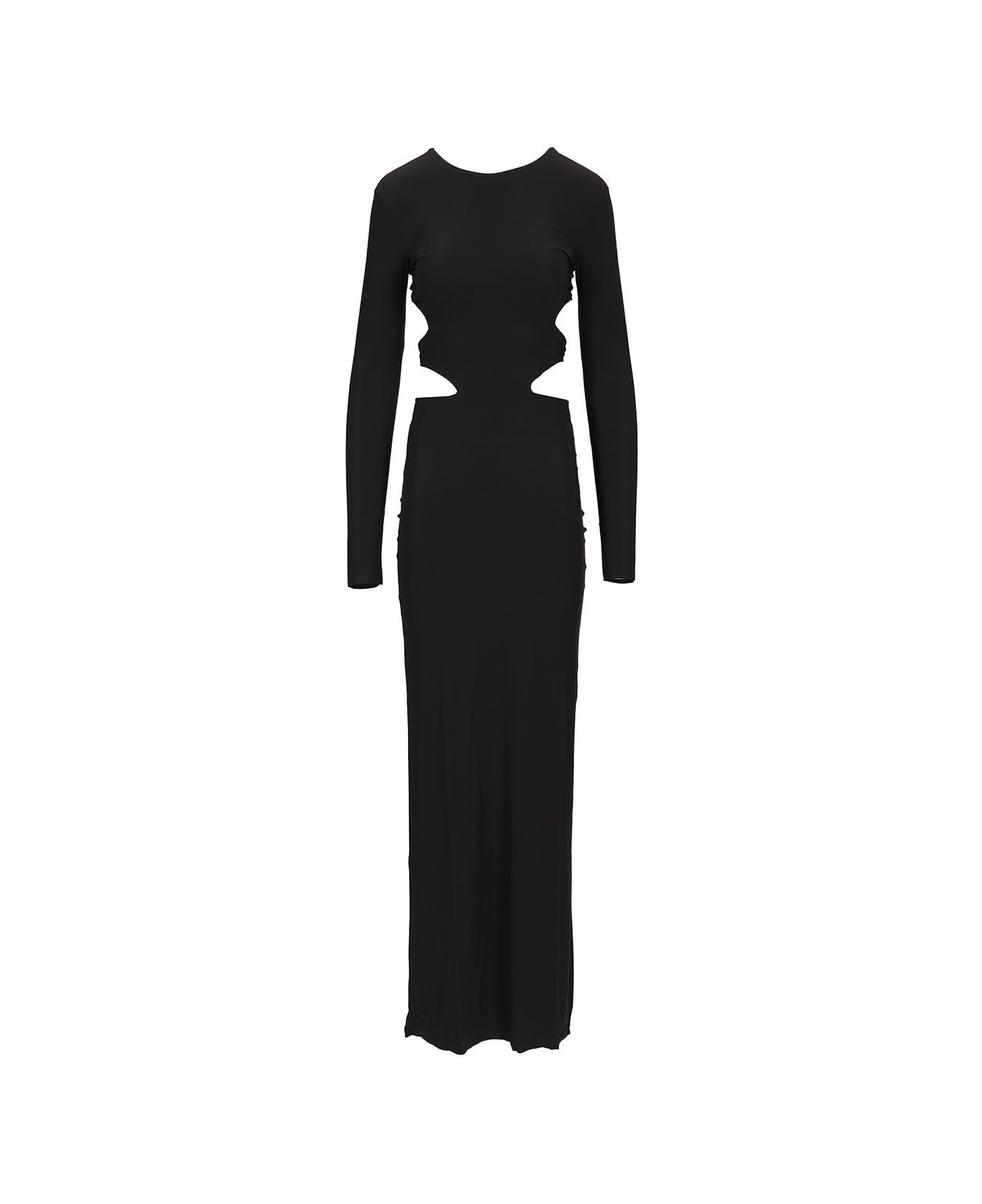 "TECLA" dress with open back in stretch jersey by Amazuin, with long sleeves and cut-out details at the waist, adjustable laces to personalize the fit