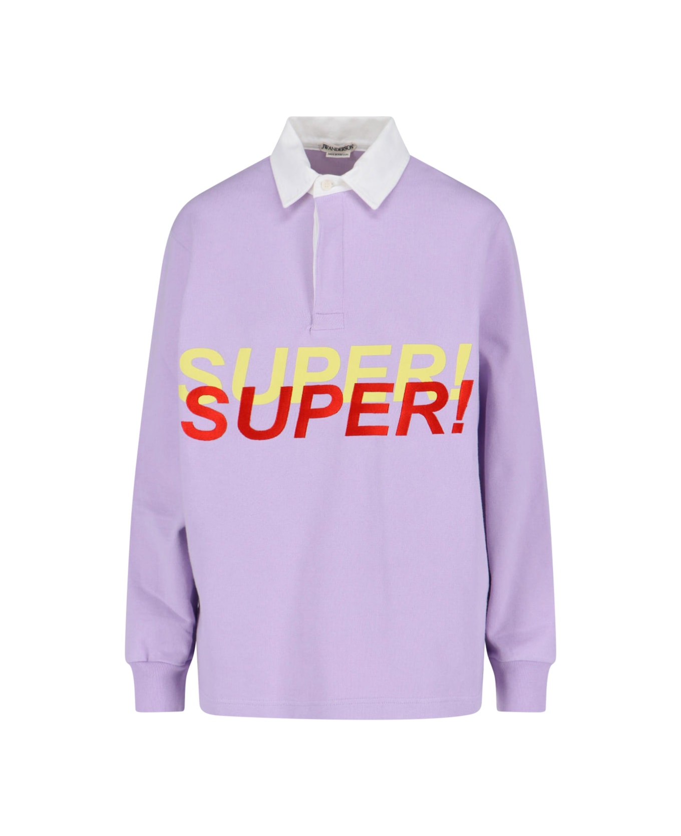 J. W. Anderson 'super super' rugby jersey in purple cotton with front button closure, contrast print on the front, straight hem.