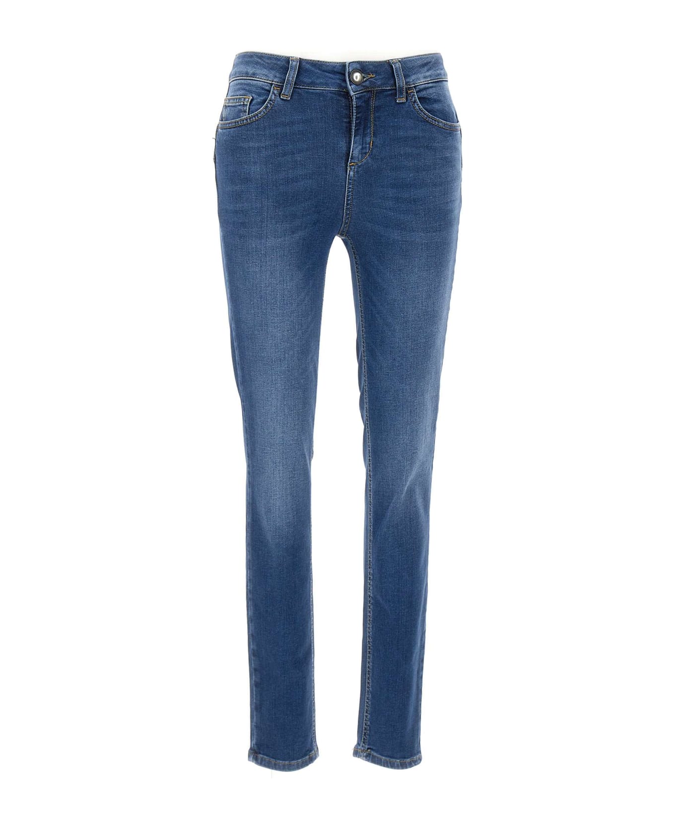 Liu-Jo "Bottom Up Parfait Divine" women's jeans, denim blue, five-pocket model, jewel button and zip fastening, mini elastic with curl on back, Better Denim eco friendly collection, skinny fit.