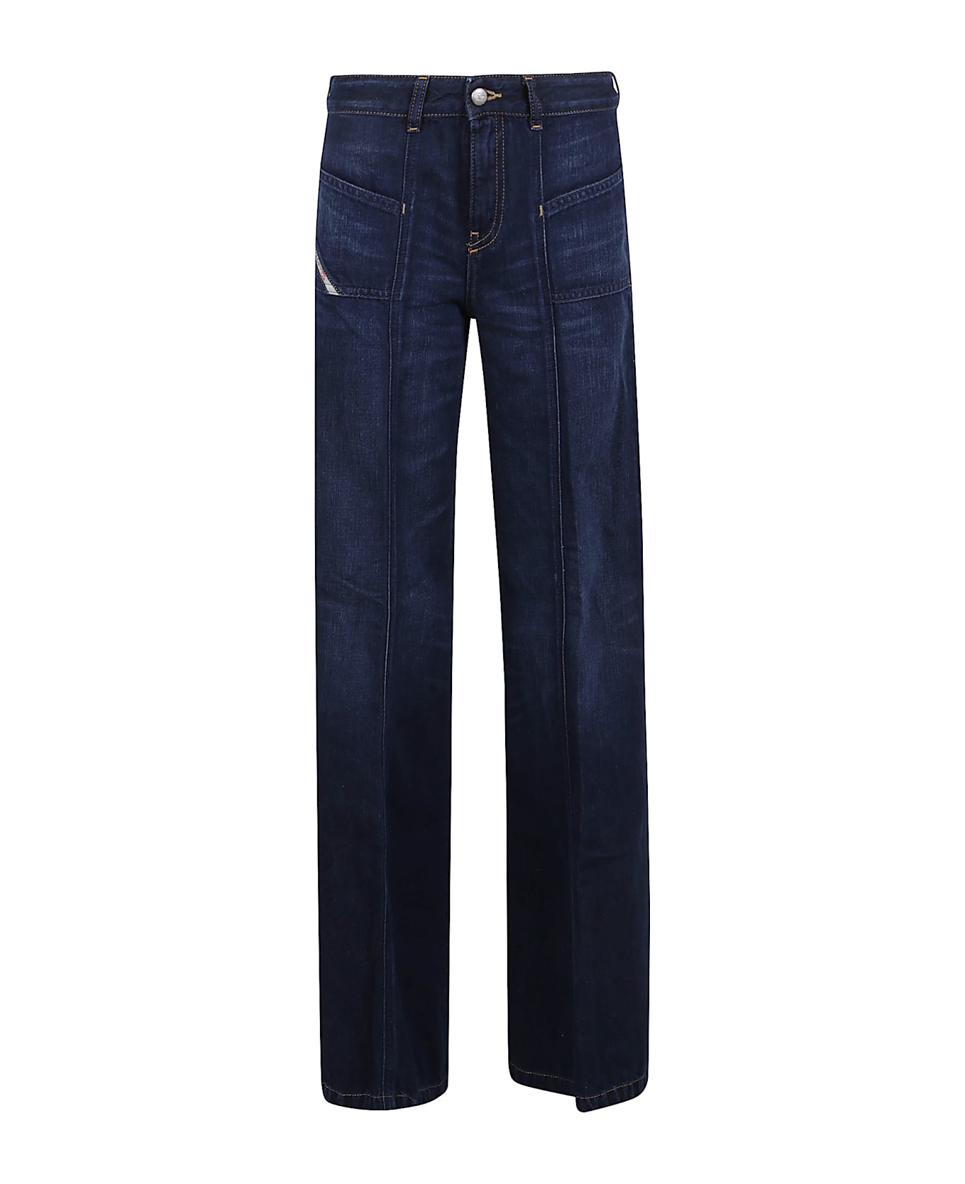 Soft cotton denim jeans from DIESEL. Zip and button fastening; belt loops; wide leg design with a flowing silhouette. Features stitching to the front and back and iconic `Hush` pockets.