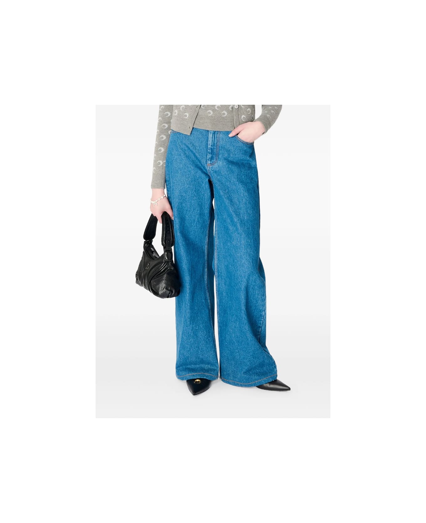 light blue high waist flare leg laser wash back pockets crescent moon embroidery