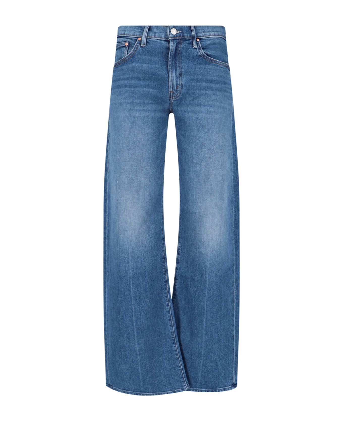 Mother 'The ditcher roller sneak superior' jeans in blue stretch cotton denim with mid waist, zip and button closure, belt loops, five pockets, wide leg. Composition: 98% Cotton, 2% Elastane
